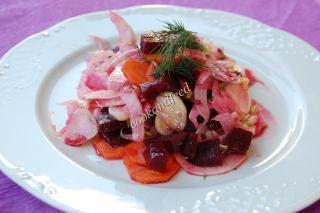 * Ανακατέψτε τριμμένο λάχανο, καρότο και παντζάρι με αναλογίες 3:1:1.