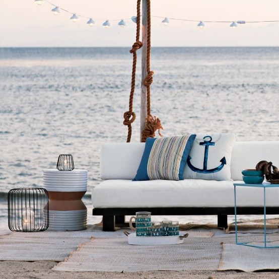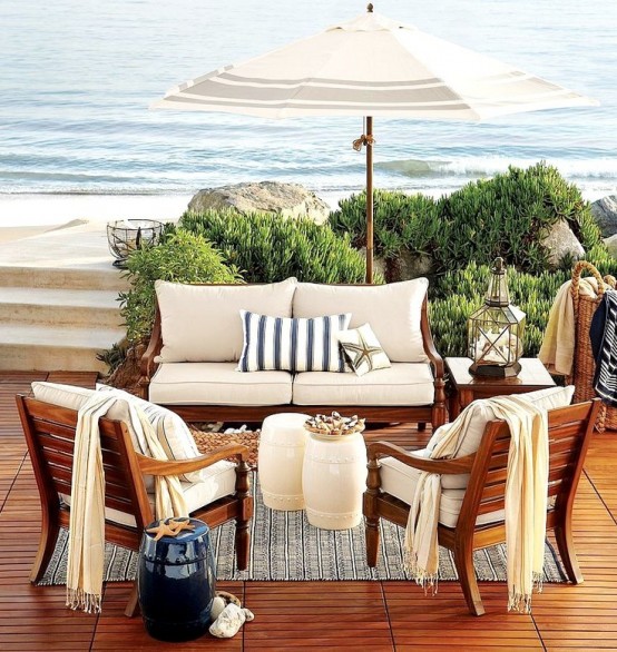 Το καλοκαίρι όλοι θέλετε να πάτε στην παραλία,και στη θάλασσα, αλλά αν δεν έχετε την άνεση να κάνετε διακοπές μπορείτε να έχετε μια παραλία που βρίσκεται κοντά στο παράθυρό σας!Δημιουργήστε αίθριο σαν μια παραλία-εμπνευσμένη ή αν έχετε ένα εξοχικό σπίτι, κάντε το αίθριο του να μοίαζει με παραλία Έπιπλα μπαμπού, κάποια ηλιοροφή ή μια σκηνή, άνετες καρέκλες και ένα τραπέζι, χρώματα της θάλασσας – αυτά είναι τα πιο σημαντικά κομμάτια. Προσθέστε επίσης κομμάτια διακόσμηση που θυμίζουν θάλασσα όπως κοχύλια κοράλλια, ψάρια, και αστερίες, Κέλυφος και γιρλάντες και φανάρια πάνω στα τραπέζια, – αυτά τα εξαρτήματα θα μπορούσε να δημιουργήσουν μια θάλασσα-style ατμόσφαιρα. Ξύλινα deck και driftwood θα τονίσoουν το στυλ. Κοιτάξτε μερικά ακόμη παραδείγματα στις παρακάτω εικόνες και απολαύστε τα….