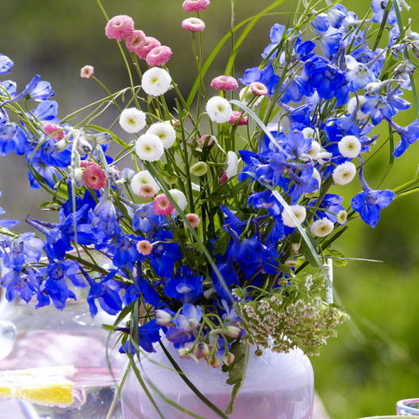 Σας προσκαλούμε να μάθετε τα μυστικά της εσωτερικής διακόσμησης σε αποχρώσεις του μπλε με μπλε λουλούδια και μπλε ανθοδέσμες. Και δεν είναι τόσο εύκολο όσο μπορεί να φαίνεται με την πρώτη ματιά, γιατί το έντονο μπλε σαν τόνος – είναι αρκετά απαιτητικό στο περιβάλλον, σε αντίθεση με το λευκό ή αποχρώσεις του κόκκινου και του κίτρινου.