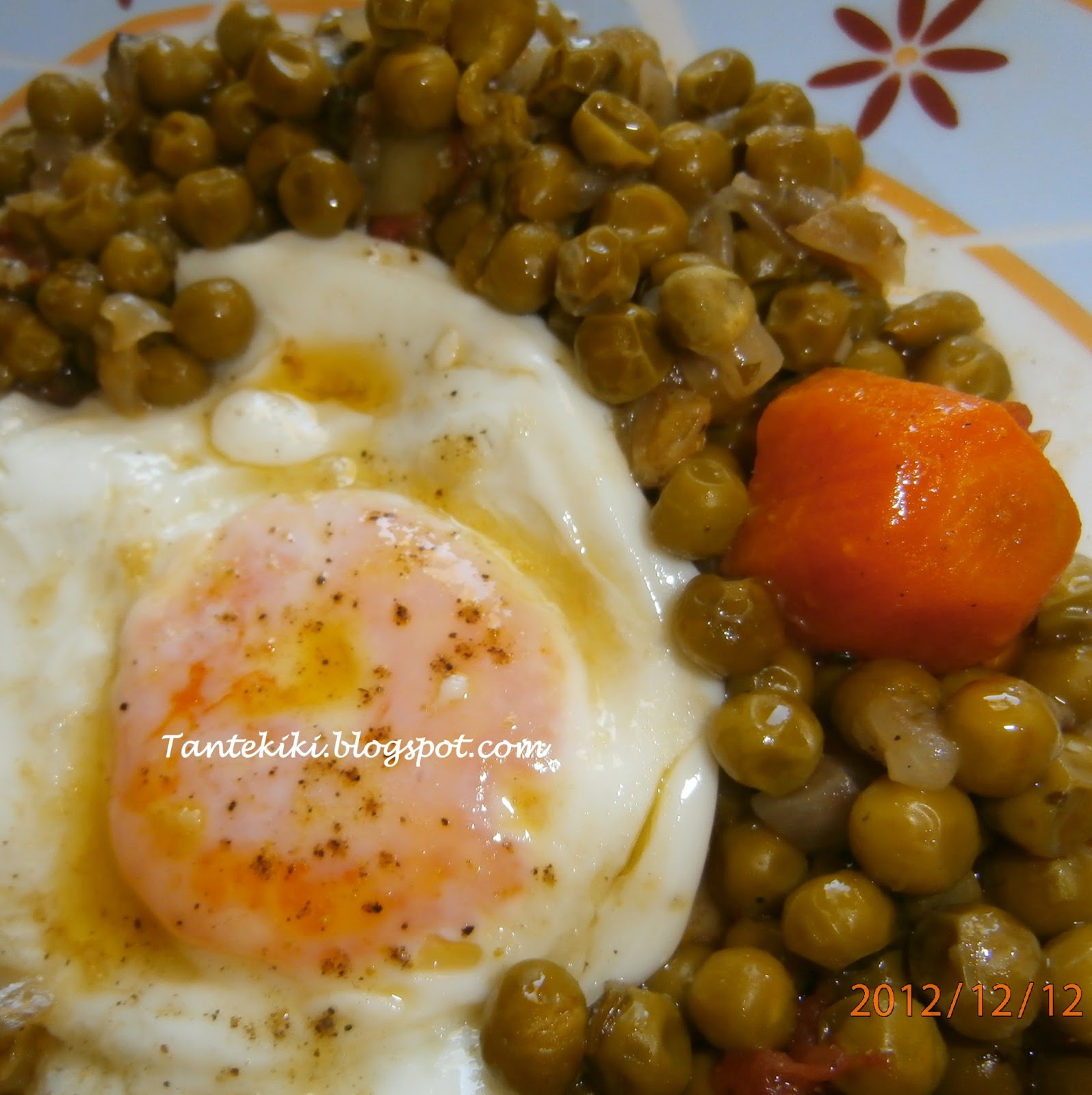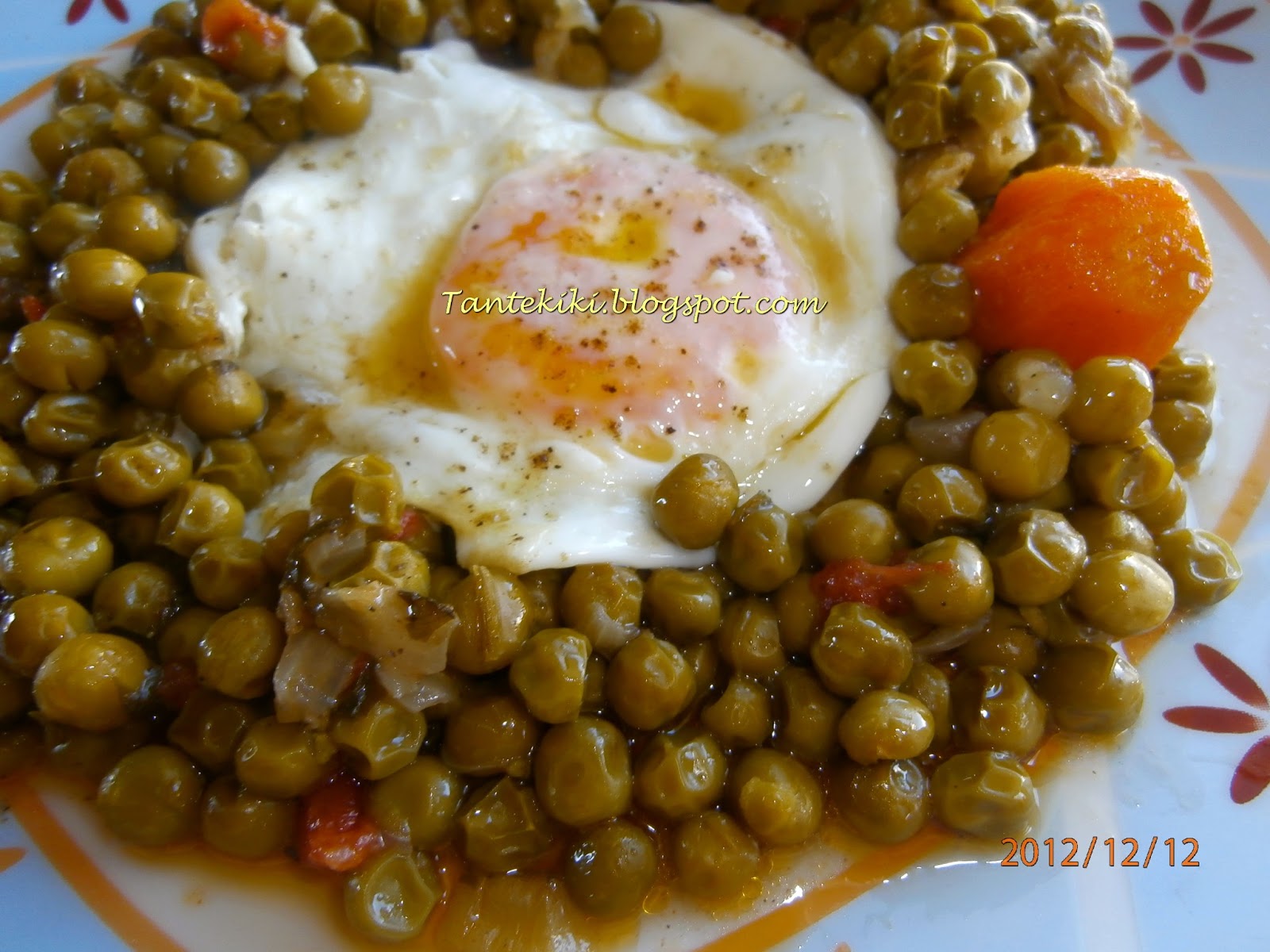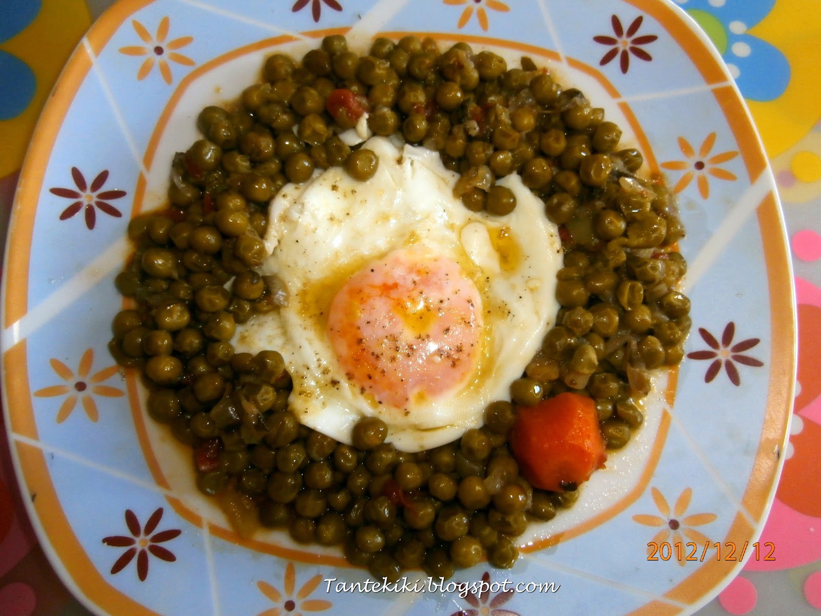 Σερβίρουμε τον αρακά με ένα αβγό πασπαλισμένο με λίγη γλυκιά πάπρικα.